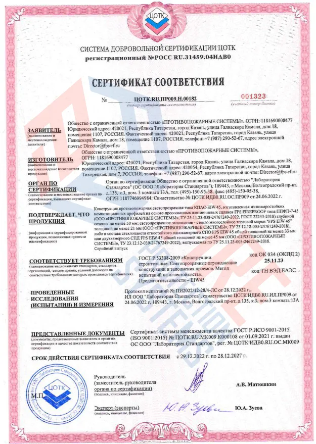 Противопожарные светопрозрачные перегородки отличаются следующими свойствами: